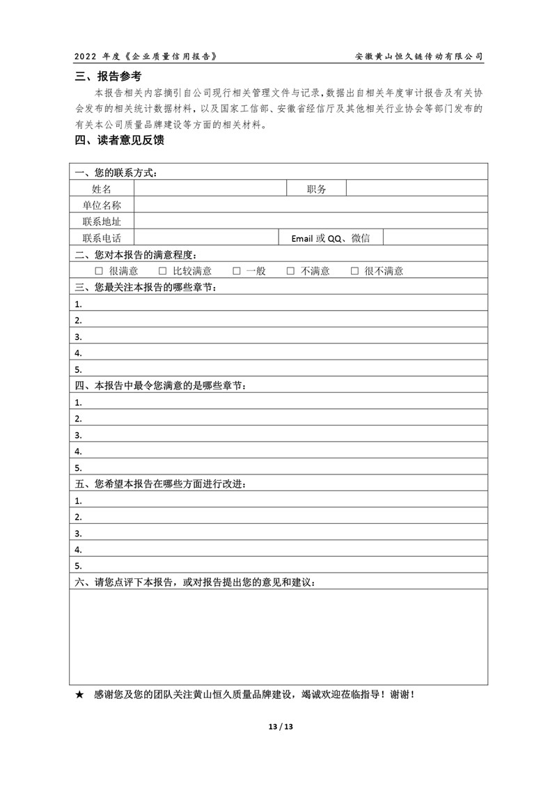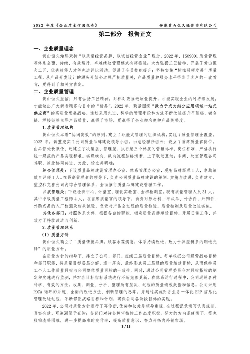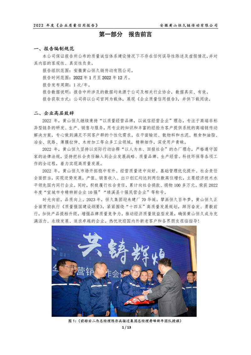 2022年度黄山恒久公司企业质量信用报告