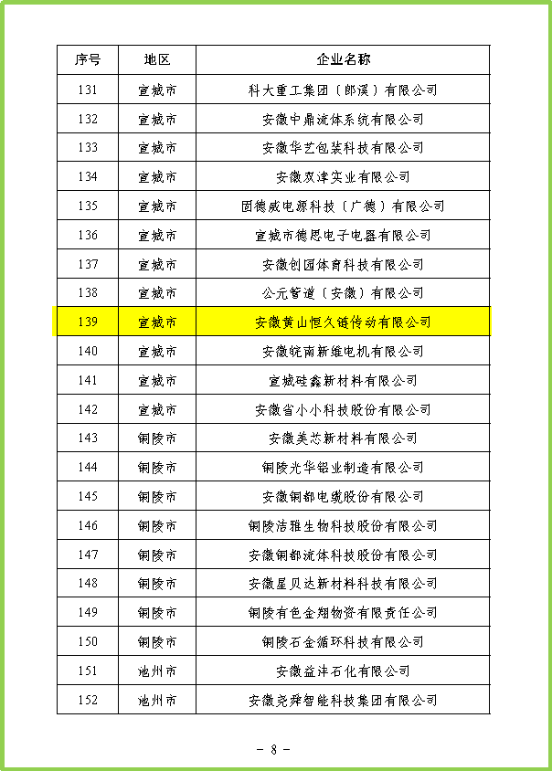 近日,安徽省工业和信息化厅正式公布2025年度省级绿色工厂认定名单,黄山恒久成功上榜。